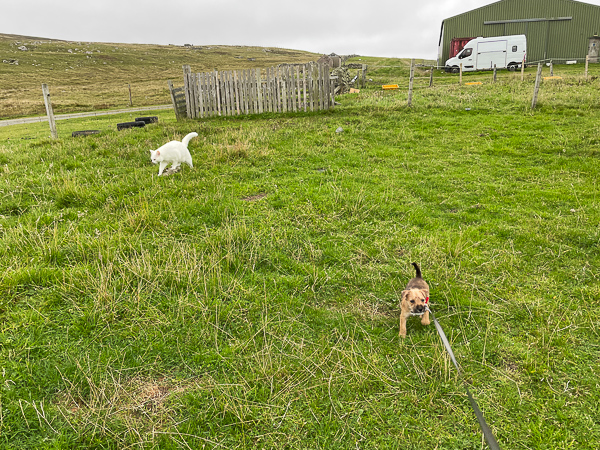Afterwards, I took Pepper for a walk in the field on an extending lead.