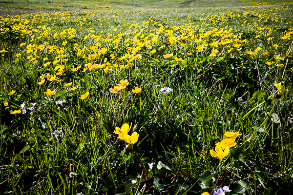 The marsh marigolds are everywhere.  In Shetland dialect it is ‘blugga’.