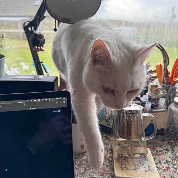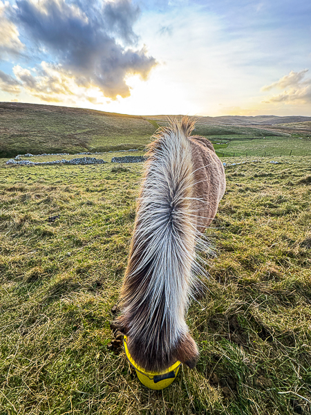 I was going quite well, when OH arrived to take the dogs for a walk and Monster wandered up the shed track.