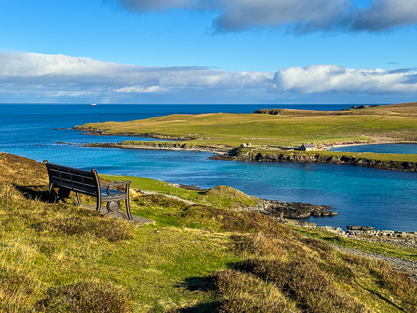 I keep thinking to myself “this time yesterday, I was eating cake”. Yesterday was a lovely adventure and I also keep thinking that the bench looking over to Noss was a special place – a place to make life decisions (the sun shining helped hugely too).