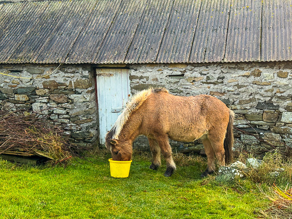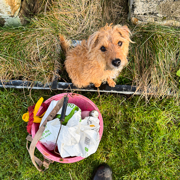 I dashed home and got Haakon’s bucket ready. He was waiting and I pushed him through the garden gate to eat by himself.