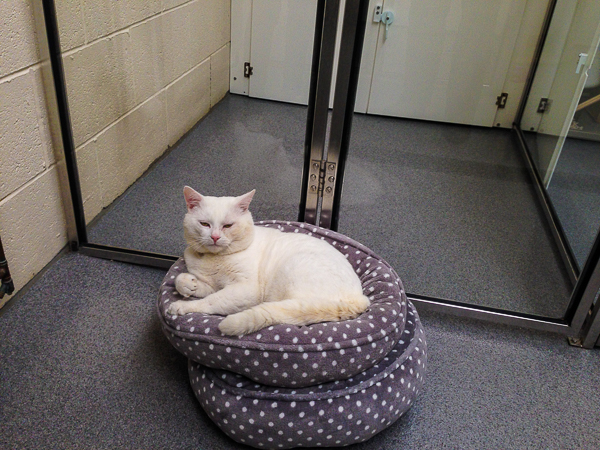 Day 1 when Daisy and I first met Monster at the SSPCA, Banchory. We were considered acceptable by himself and he came home that evening on the boat with us.