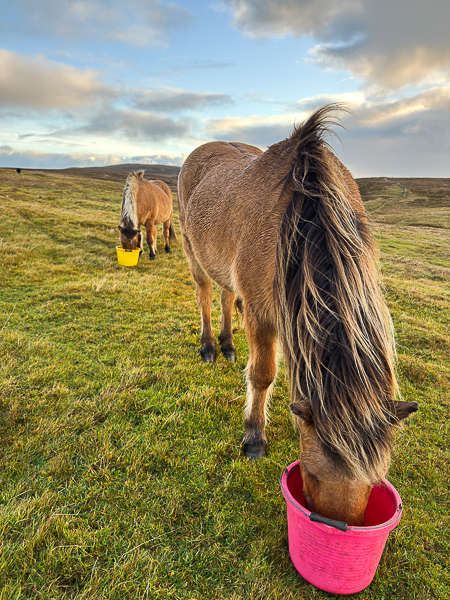 Meanwhile, the others continued to eat and I realised that I needed to get between Kolka and everyone else as she is also a huge thief and bully with other horses’ food. My only imperative at breakfast-time is that Iacs should have his anti-cancer pills no matter what.