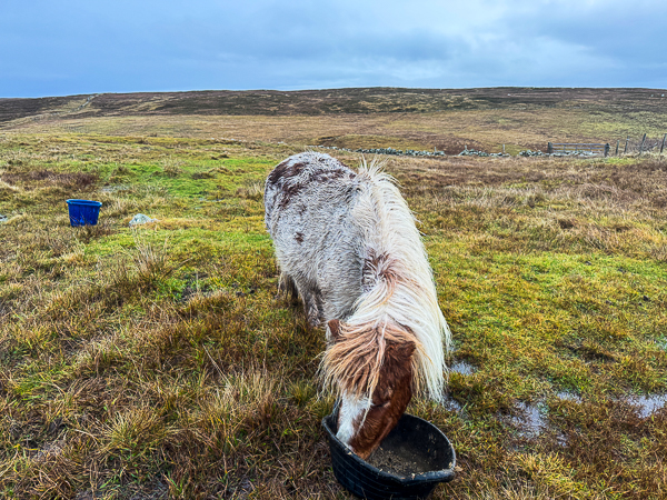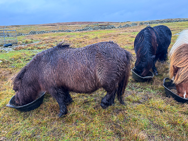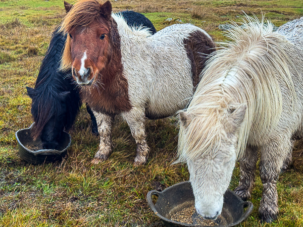 Later, on the dog walk, I found Maggie who was in the wrong field (just why?) I brought her home and she very gratefully rejoined the others. Dahlia and Gussie were at the furthest point of the field possibly gazing at a newly arrived hill-ram. I gave them the breakfast I had brought so I knew they were moving and eating fine. Oh, yes and then it started to rain and I got home totally soaked through to the skin.