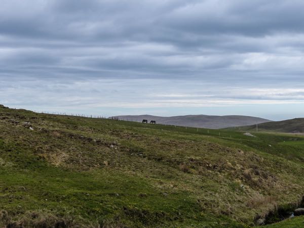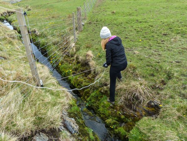 The fence goes from one end of the field to the corner. A long way, even crossing the burn that runs through all the fields. It is on the top so if Taktur pushes the fence, he will be zapped. If he starts pawing it, we will run another line along the middle.