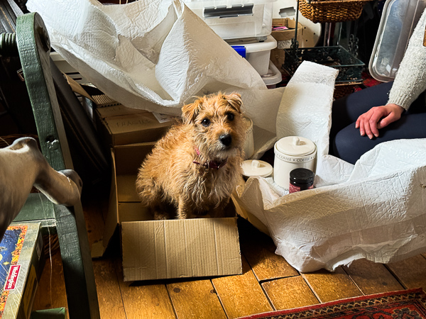 Meanwhile, at home Flossie was busy packing up some of her stuff to go south. Obviously she was helped.