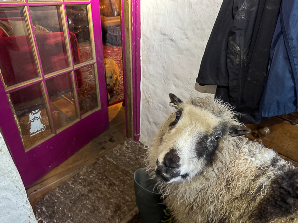 Sadly, I had to push Lambie back outside telling him to say nothing when he rejoined his biscuitless friends. I think OH would have a complete hissy fit if I fed all his supply of elevenses’ biscuits to the sheep!