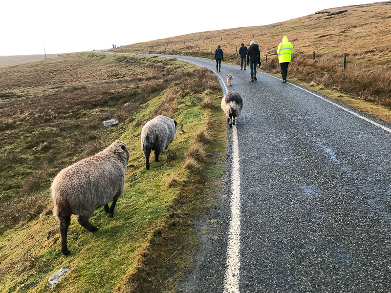 We all, man and sheep, strode off on our virtuous Christmas walk.