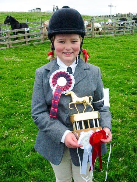 Meanwhile, in the Shetland pony ring, Flossie was having her own success as Junior Handler (under 13) leading Fivla.  I would love to say she wiped the floor with the opposition but actually she was the only one in the class.  But, as we told her, they didn’t have to place her or give her the trophy, which is almost bigger than she is.