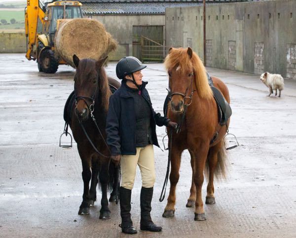 The school had now been set out with cones and poles to define the riding area for tölt-in-harmony. There were even flags (sort of).